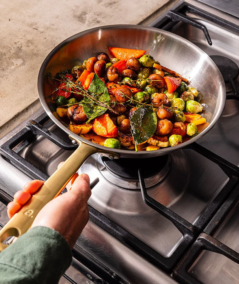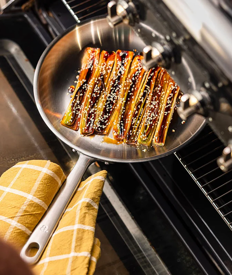Nuestras buenas sartenes son compatibles con todas las fuentes de calor: inducción, gas, vitrocerámica, eléctrica, horno, ¡e incluso barbacoa si quieres probar!