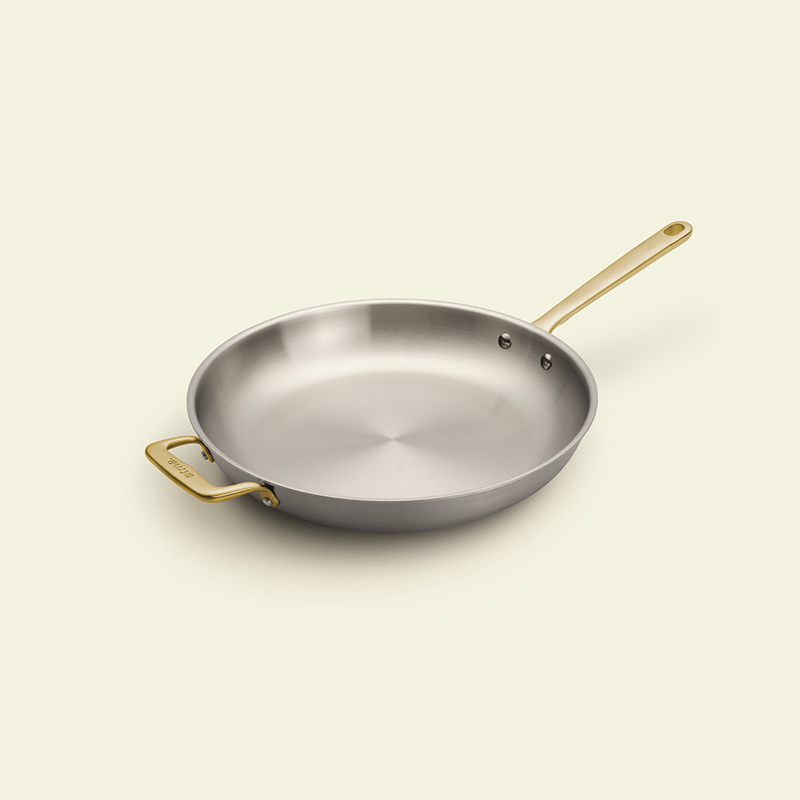Nuestras sartenes totalmente de acero inoxidable están disponibles en varios tamaños: 20 cm, 26 cm y 28 cm de diámetro. Próximamente también ofreceremos una sartén de acero inoxidable de 30 cm de diámetro. Por ello, nuestras sartenes son aptas para todo tipo de cocinas y son adecuadas para todos, tanto si cocinas simplemente para ti como para grupos grandes. El juego de tres sartenes le permitirá por tanto diversificar al máximo sus placeres.