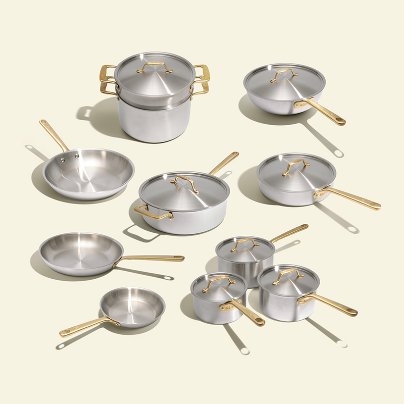 Batterie de cuisine en inox avec manches dorés, 21 pièces - Atma Kitchenware