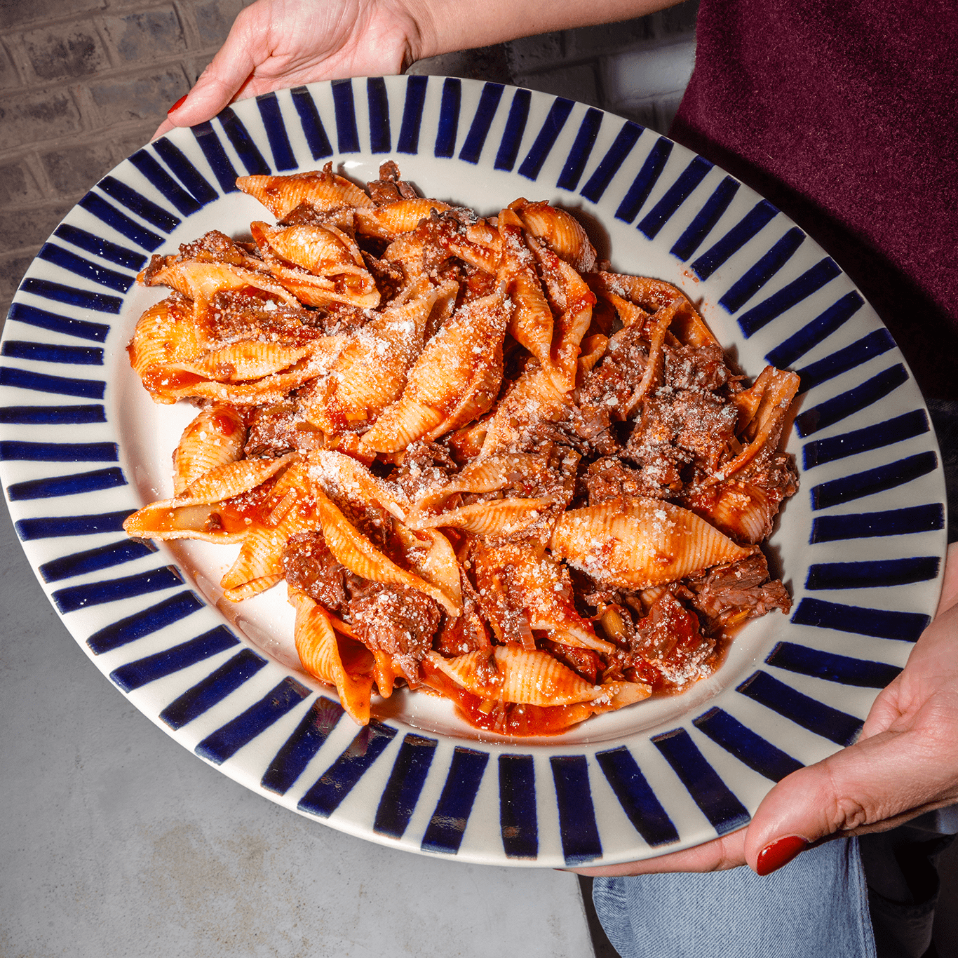 El plato de presentación, en azul medianoche