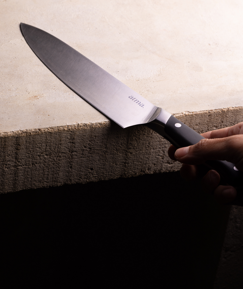 Nuestros cuchillos están forjados con espiga completa. Es decir, la hoja se extiende a lo largo A lo largo de todo el mango. El acero va desde la punta de la hoja hasta el final del mango. Esta técnica es la más resistente y duradera disponible. ¡Se acabaron las hojas que se sueltan del mango y tienes que tirarlas a la basura!