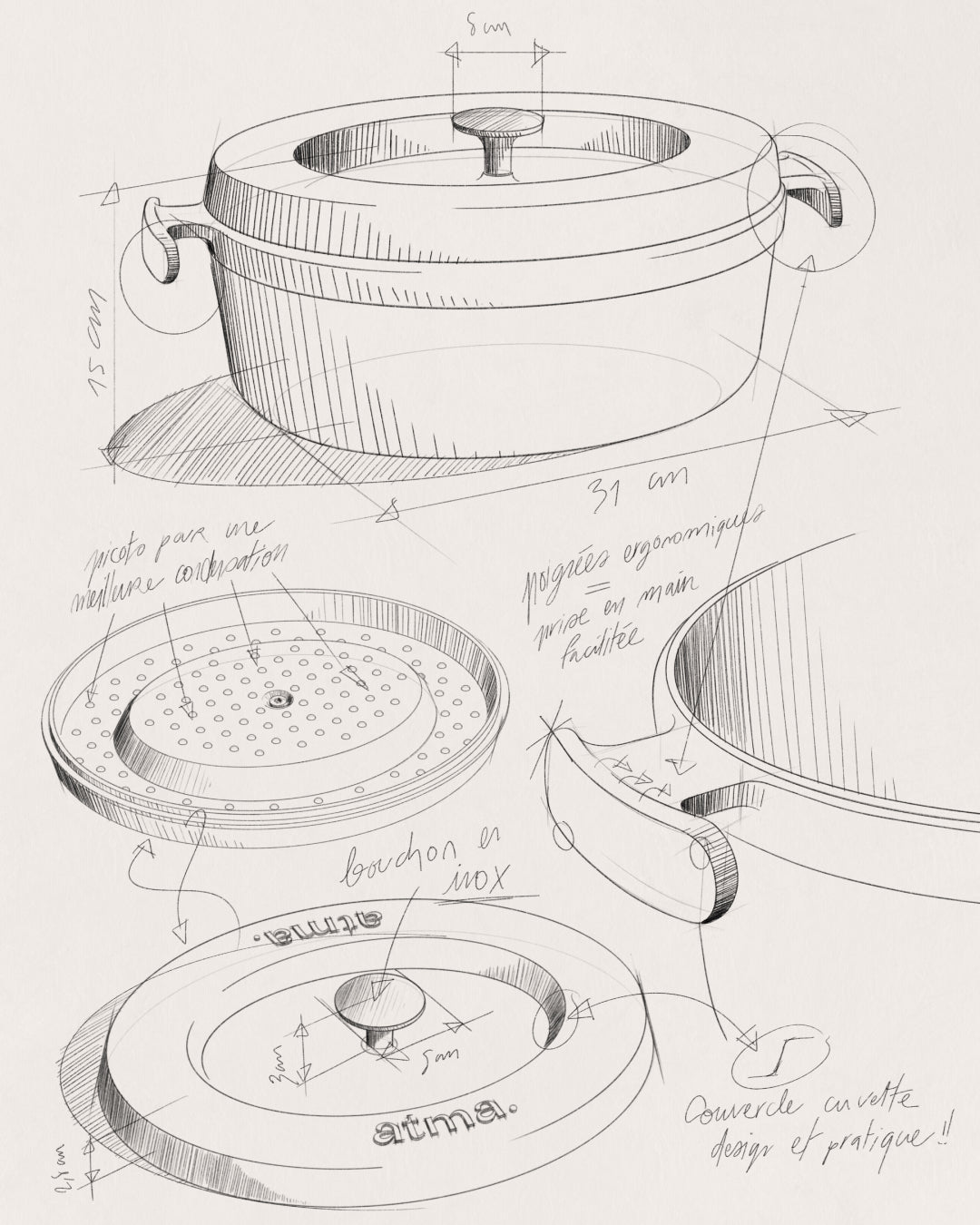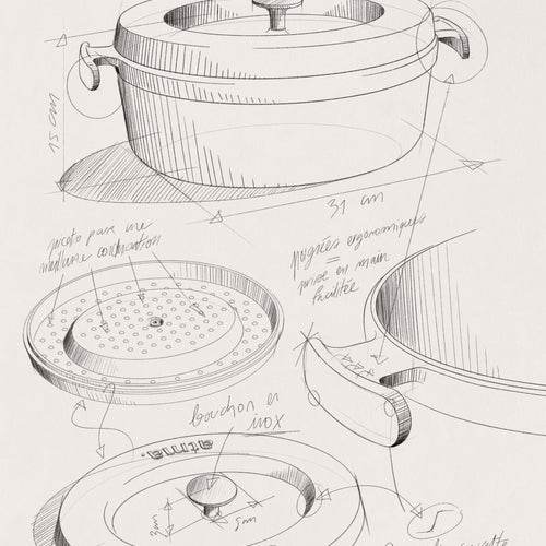 ¿El material? Metal fundido a una temperatura de hasta 1400 °C: un grueso hierro fundido que difunde y retiene el calor como ningún otro material. Dora, cuece a fuego lento y conserva los aromas. Nada se evapora, todo se absorbe. ¿La base? Sólida y esmaltada, para resistir las cocciones más intensas. Pasa de los fogones al horno y viceversa. ¿La tapa? Diseñada para retener la humedad y redistribuirla a la perfección. No hace falta vigilar ni rociar: la cazuela funciona y te deja las manos (y la mente) libres.