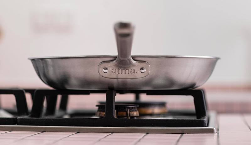 En Atma, queremos que las personas aficionadas a la cocina puedan permitirse la misma calidad que los chefs de los mejores restaurantes. Por eso hemos optado por un acero inoxidable tricapa en toda la superficie para una difusión óptima del calor: sus preparaciones son más rápidas, más precisas y, obviamente, más sabrosas. Y sí, lo repetimos: el acero inoxidable tricapa es compatible con todo tipo de fuegos y, por tanto, compatible con inducción, gas, eléctrico, horno y placas vitrocerámicas.