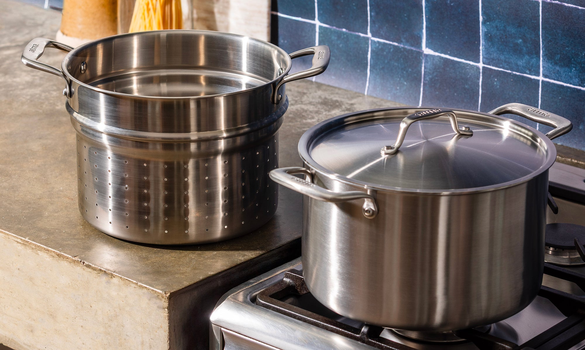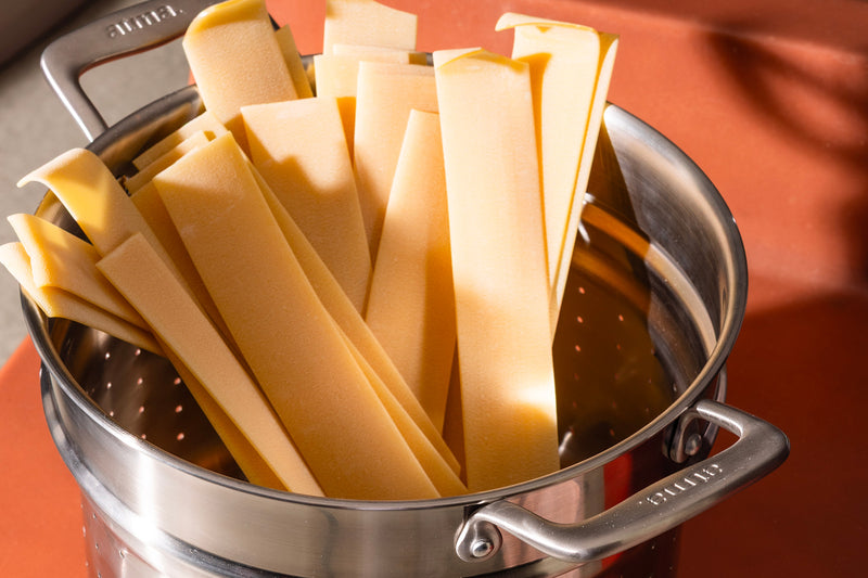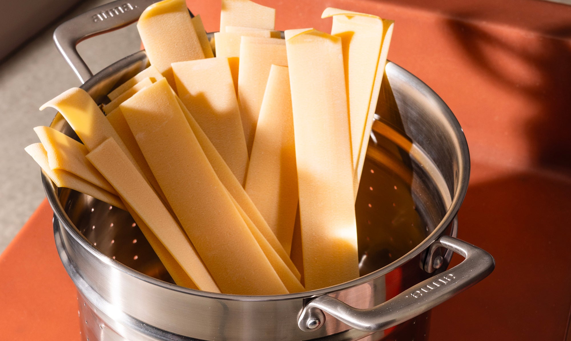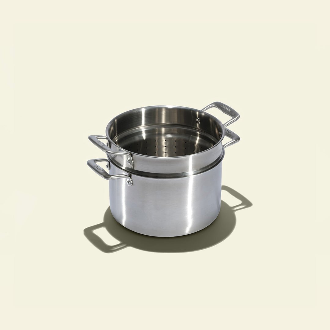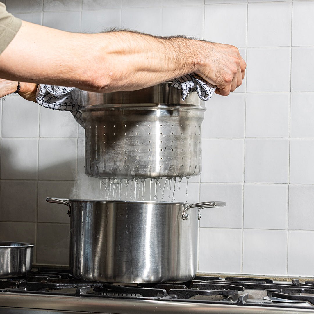 Si vous aimez les pâtes, vous aimerez le pasta pot. Ce nouvel accessoire s’utilise avec notre faitout, pour égoutter vos linguine en un geste. Une cuisson maîtrisée, pour kiffer au quotidien. Et toujours en inox, la matière saine et durable par excellence. Ne manque plus qu’une montagne de parmesan, trois tours de moulin à poivre - et buon appetito !