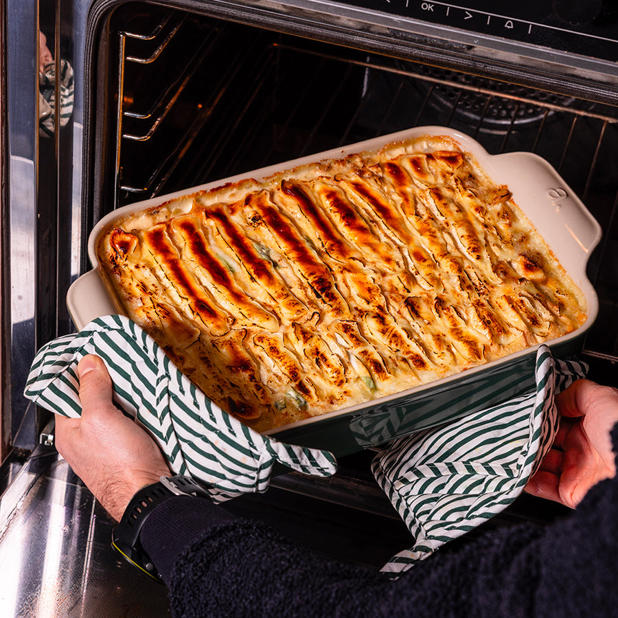 Hemos diseñado este plato para horno contigo. Como siempre, os pedimos vuestra opinión y más de 1.200 habéis compartido con nosotros vuestras expectativas. Así que analizamos cada una de tus respuestas para entender mejor cuál es la fuente de horno perfecta para ti. Cerámica o vidrio: usted se ha decidido por la cerámica. ¿Su formato? Rectangular como desees. Para los colores, la elección fue compartida entre un verde oliva y un bonito azul medianoche. Por eso hemos decidido complacerte y ofrecerte estos dos colores atemporales.
