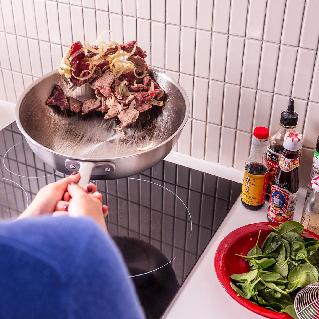 En Atma, queremos que los aficionados a la cocina puedan disfrutar de la misma calidad que los chefs de los mejores restaurantes. Por eso hemos optado por el acero inoxidable de 3 capas en toda la superficie para una distribución óptima del calor: sus preparaciones serán más rápidas, más precisas y, por supuesto, más sabrosas. Y sí, el acero inoxidable de 3 capas es compatible con todo tipo de placas, incluidas las de inducción, gas, eléctricas, de horno y vitrocerámicas.